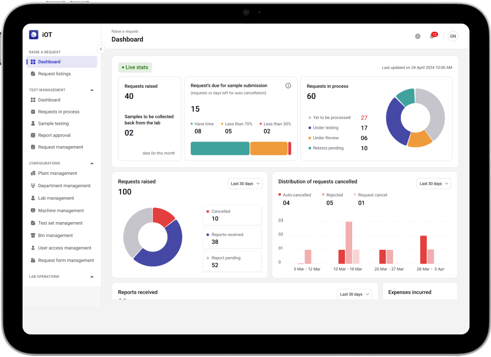 Develop a Laboratory Management System that would provide real-time visibility into all ongoing tests, requests, and approvals.