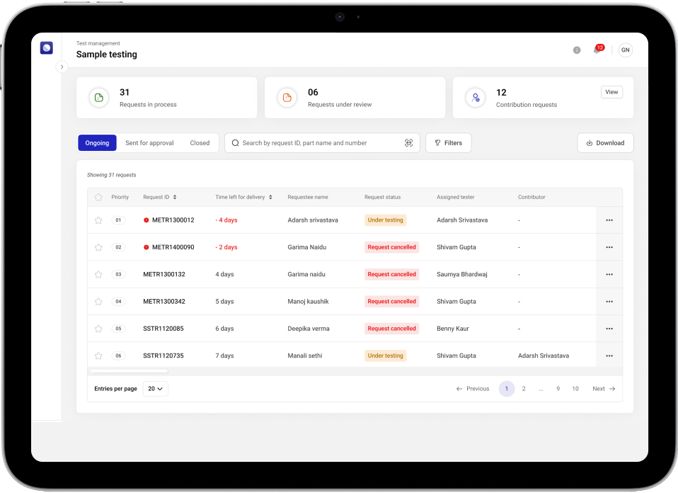 Automated the complete testing lifecycle, from test request creation and scheduling to final evaluation and approval, eliminating manual dependencies and reducing turnaround time.